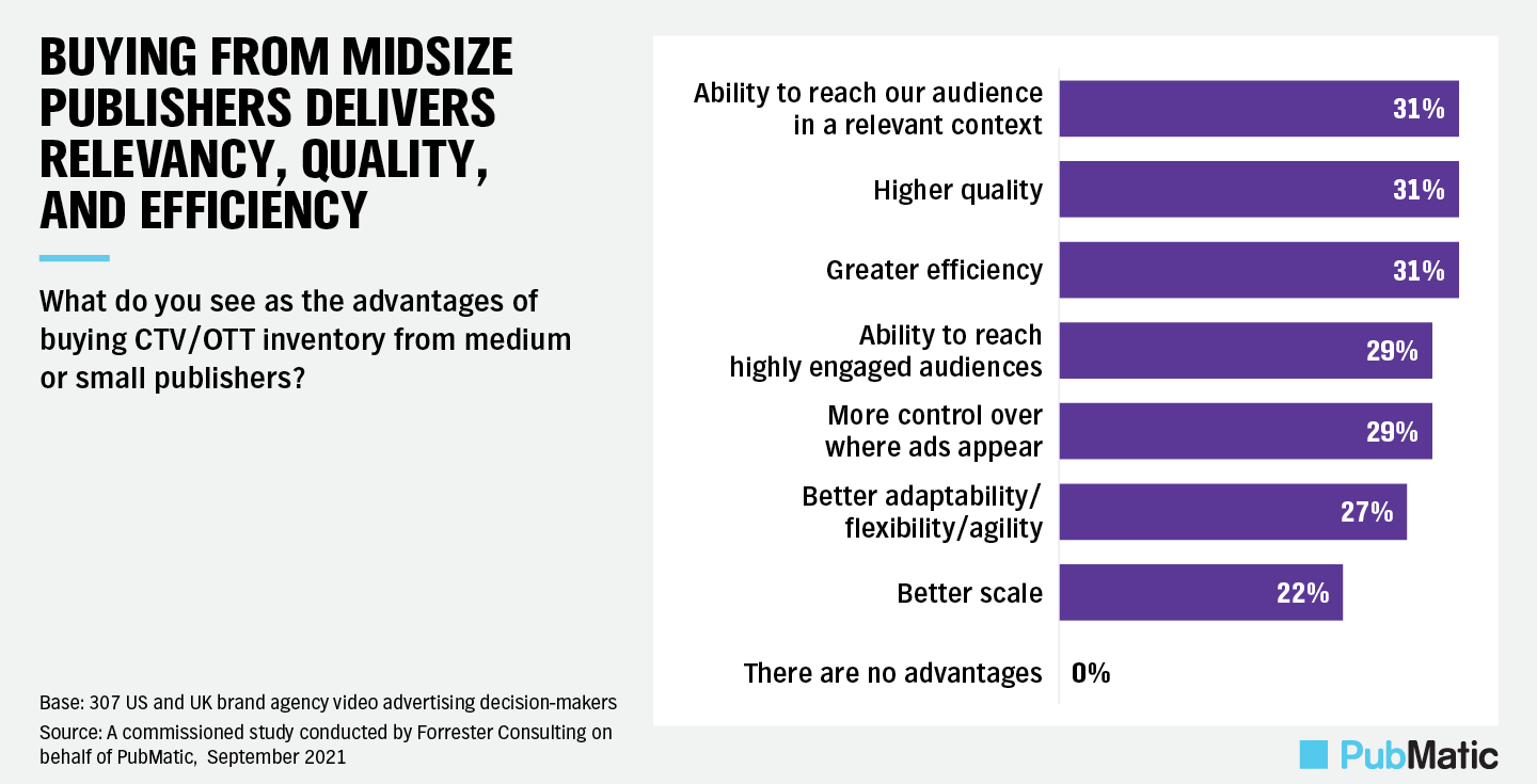 Respondents agreed investing in more diverse content enables them to reach audiences in more relevant contexts, as well as to ultimately find higher inventory quality and derive greater efficiency than with large publishers alone.