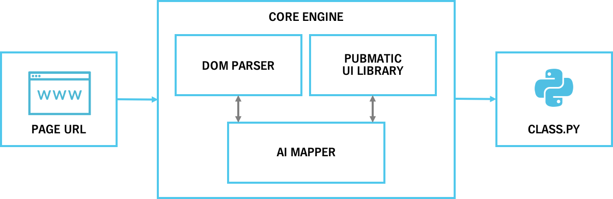 PubMatic has developed a custom library of UI core components; these components act as the building blocks of our pages. The core engine of our UI bot runs on an AI algorithm called “Mapper” which scans through the page’s document object model (DOM) and maps DOM elements to UI core components. The bot then automatically generates the automation code in the desired programming language.