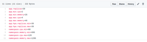 - Optionally define environment–specific resource requirements as configuration (RAM, CPU, auto scaling needs, etc.). Fallback to defaults available