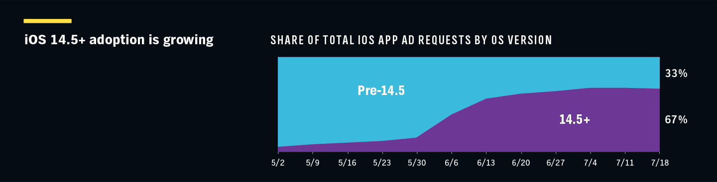 The initial impact of the iOS 14.5 roll-out lowered IDFA presence in ad requests by 30 percentage points. As the adoption of 14.5 iOS has grown, making restrictions more widespread, roughly two-fifths of these same users embraced opt-in ad requests, and is continuing to expand. Sure, iPhone customers want their data protected; they are also open to receiving ads under app-tracking restrictions when they can receive some sort of return for watching ads.