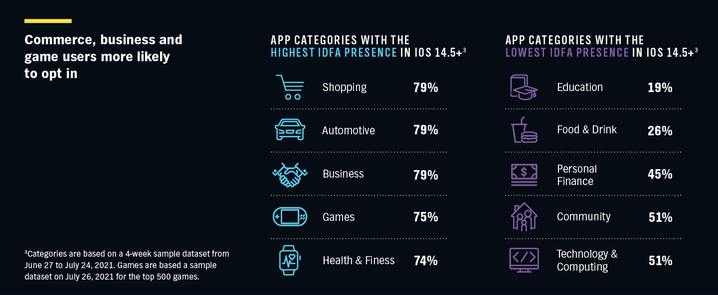 IDFA PRESENCE BY APP CATEGORY IN IOS 14.5+