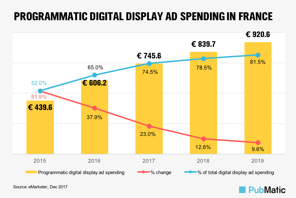 Open RTB represented the majority of automated ad bids and spending in France in 2017, but major advertisers have recently favored private marketplaces (PMPs) as they offer additional levers to lower brand risk, secure access to more effective formats and increase viewability and accountability.