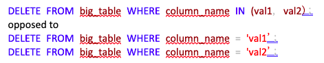 Make sure to limit number of entries in the IN clause. If the number is large the MySQL optimizer may choose to not use an index. Enable the MySQL general log during development and analysis to check whether batching is working as desired.
