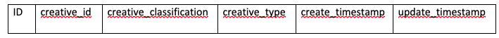 select creative_id, creative_classification from creative_data where creative_type = ‘video’ order by create_timestamp desc limit 100;