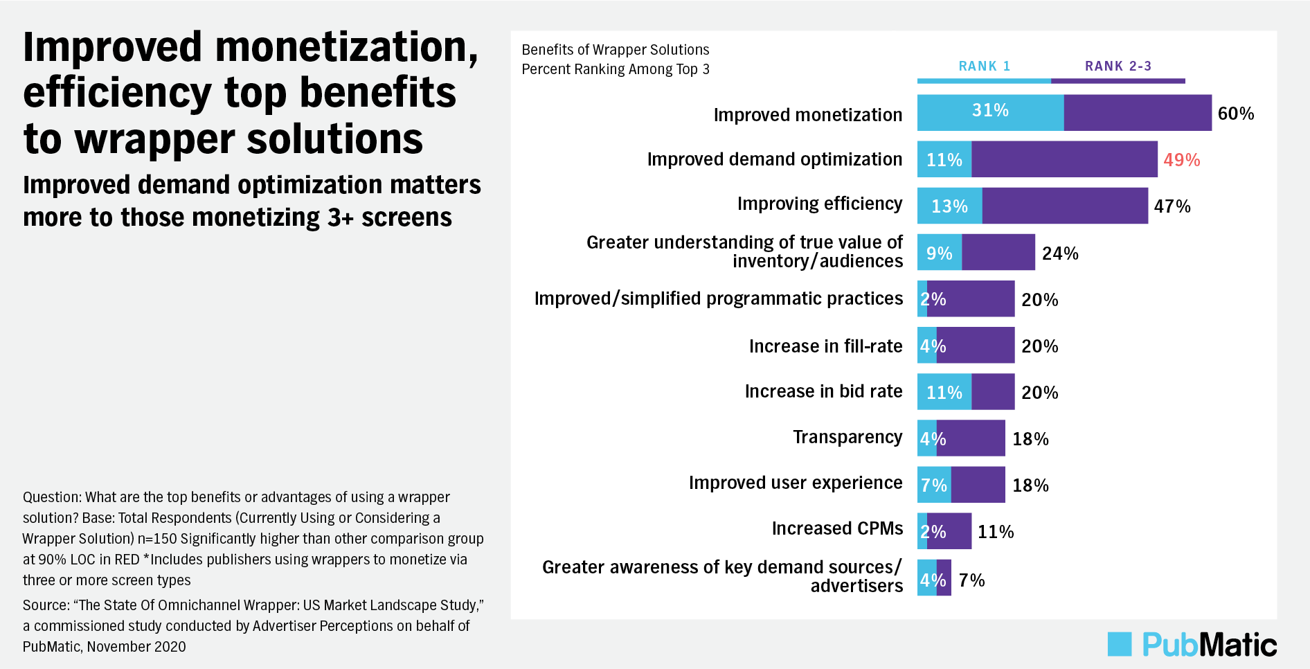 According to the study, improved monetization, improved demand optimization, and improved efficiency were the top three benefits omnichannel publishers gained from utilizing wrappers. While we view monetization performance as table stakes in any solution, offering broad and unique access to demand facilitates supply path and inventory optimization.