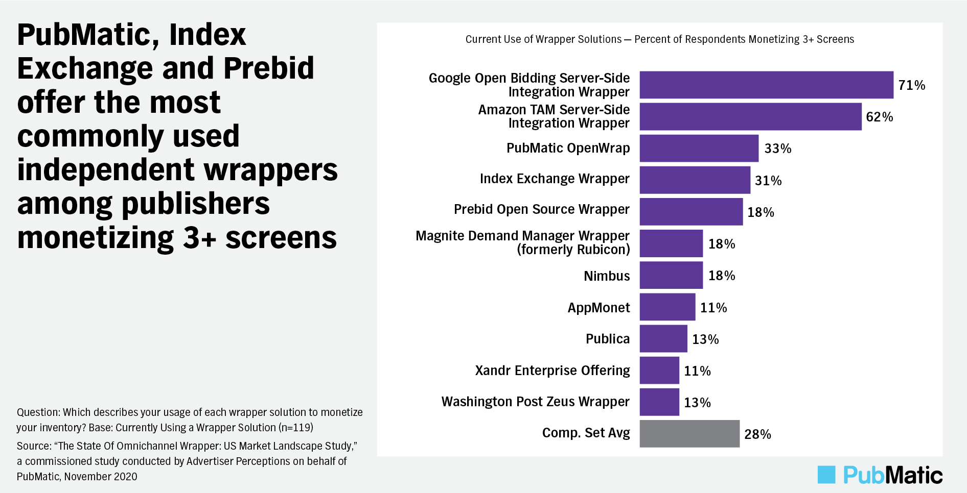 The future of omnichannel digital ad buying is programmatic, and vice versa. Publishers are increasingly turning to header bidding and wrapper solutions to improve their monetization strategies, but the underlying usage behaviors within emerging formats and platforms is not well understood. PubMatic commissioned Advertiser Perceptions to ask 150 US publishers and app developers to provide insight into the challenges and opportunities they face as they incorporate wrapper technology into their framework.
