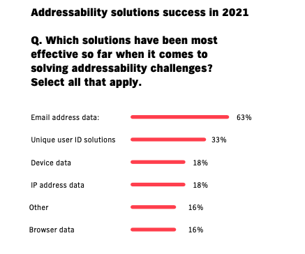 In the near-term, leaning into email address data and unique user IDs shows the greatest promise when it comes to addressability solutions.